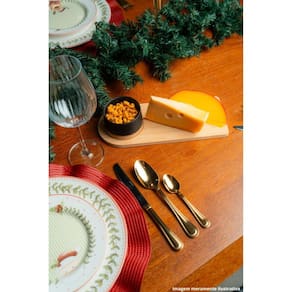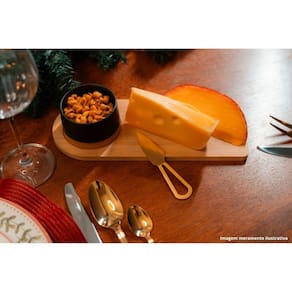 Conjunto Petisqueira com Bandeja de Bambu e Faca Dourada 12x30x6cm 220455 - Lyor - Dorémi Casa e Decor