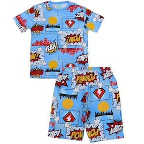 Conjunto Pijama Verão Juvenil Kyly Estampado Azul Divertido - Conforto e Estilo para Noites de Verão - Camiseta e Bermuda Juvenil Kyly