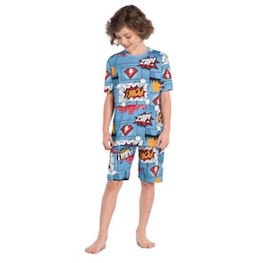 Proporcione noites de conforto e estilo para o seu menino com o Conjunto Pijama de Verão Juvenil Kyly. Composto por uma camiseta e bermuda, ambos confeccionados em meia malha 100% algodão, este pijama oferece um toque suave na pele, garantindo uma noite de sono tranquila e confortável. Com uma estampa moderna e vibrante na cor azul, ele é perfeito para meninos que buscam um visual descolado até na hora de dormir.