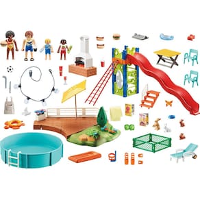 - Os adultos e as crianças mergulham diretamente na piscina a partir do escorregador.
