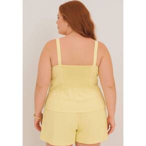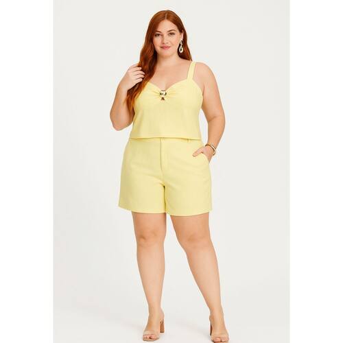 Especificações do Produto:Modelagem: Bata curta com elastéx nas costas e short de alfaiataria cintura altaDetalhes da blusa: Decote coração com aviamento dourado, alças finas e recorte que valoriza o bustoDetalhes do short: Bolsos laterais funcionais, cós com elástico nas costas, passante para cinto, fechamento com botão e zíperCores disponíveis: Verde menta e AmareloTecido: Leve, estruturado e com toque suaveComposição: 30% Poliéster | 57% Viscose | 13% Poliamida | Forro: 100% PoliésterIndicado para: Dia a dia, passeios, eventos casuais e looks de verãoCaimento: Confortável e moderno, com ajuste ideal ao corpo plus size