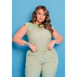 Este conjunto plus size é a escolha perfeita para quem busca praticidade sem abrir mão do estilo. Composto por blusa lisa e calça jogger, ele traz um visual moderno e sofisticado para diversas ocasiões, do dia a dia a produções mais arrumadas.