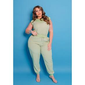 Nome: Conjunto Plus Size Liso de Blusa e Calça Jogger com Mix de Tecido
