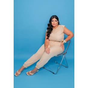 A calça jogger acompanha o mesmo conceito moderno, trazendo forro interno, elástico na cintura com detalhe de amarração, bolsos laterais funcionais e punhos na barra, garantindo um visual casual sofisticado. A modelagem valoriza as curvas com conforto, tornando o conjunto ideal tanto para looks de lazer quanto para composições mais elegantes com salto e acessórios.