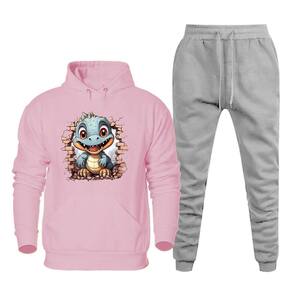 Conjunto Plus Size Moletom Masculino Numeraçao Especial Estampa Dinossauro Blusa Canguru e Calça - Rosa - G3