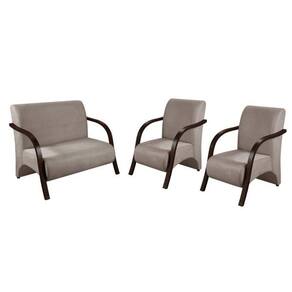 Conjunto Poltrona Decorativa Venus Braço Madeira kit 3 Peças Confortável Sala Suede - Bege Médio