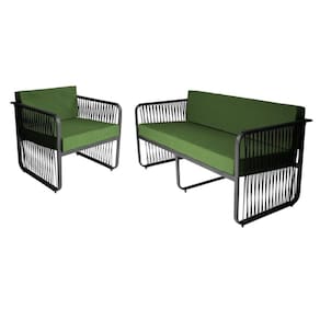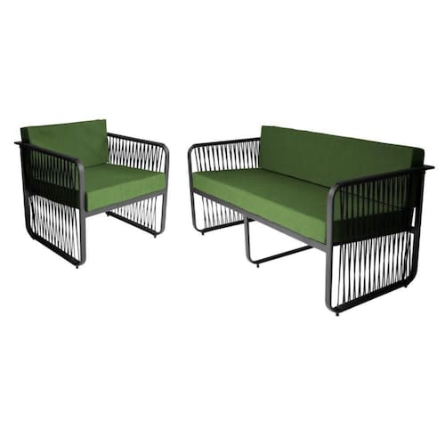 Conjunto Poltrona E Namoradeira Corda Náutica Santiago Preto/verde O Conjunto Santiago foi desenvolvido para oferecer um toque de sofisticacao e conforto a sua area externa. Com estrutura em aluminio e acabamento em corda nautica, este conjunto e ideal para quem deseja unir durabilidade e elegancia. O assento e encosto macio e confortavel com tecido impermeavel, tornando-o perfeito para espacos como areas gourmet, varandas, areas de churrasqueira e ediculas.
