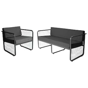 Conjunto Poltrona E Namoradeira Fibra Sintética Santiago Preto/cinza