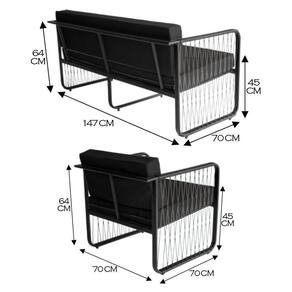 Conjunto Poltrona E Namoradeira Fibra Sintética Santiago Preto-cinza