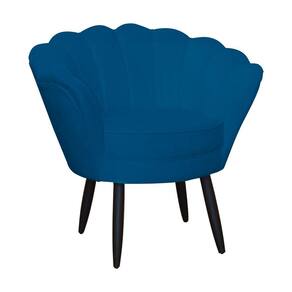 Conjunto Poltrona Estofada Com Puff Sala de Estar Pétala Suede Azul Royal - LM DECOR