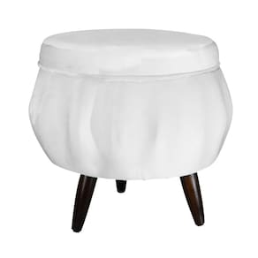Conjunto Poltrona Estofada Com Puff Sala de Estar Pétala Suede Branco - LM DECOR
