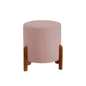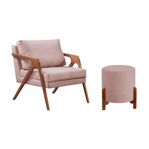 Conjunto Poltrona Mona Decorativa e Puff Thor Estofado Base Madeira Maciça Veludo Rose - Rosa