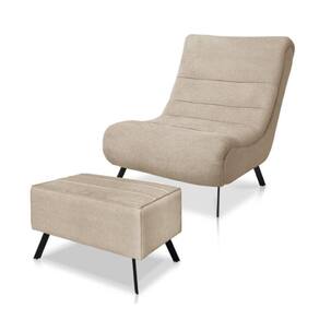 Conjunto Poltrona + Puff Com Pés De Ferro Em Tecido Bouclé Vancouver – Lucadi Bege