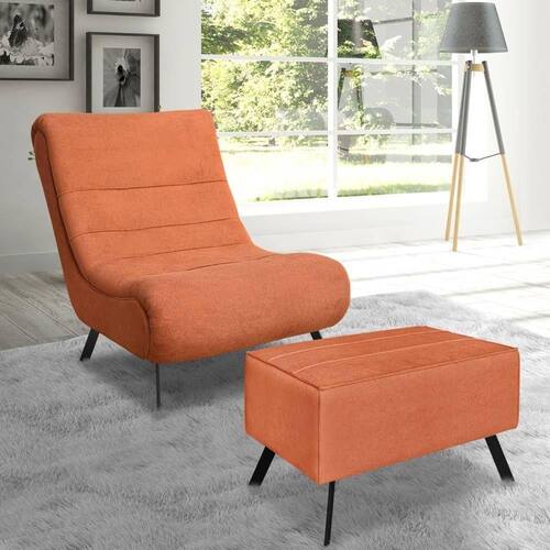 Conjunto Poltrona + Puff Com Pés De Ferro Em Tecido Bouclé Vancouver Lucadi Terracota