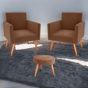 LARGURA DO PRODUTO (CM): 64 | É KIT?: Sim | CONTEÚDO DA EMBALAGEM: 2 Poltronas e 1 Puff | ALTURA DO PRODUTO (CM): 80 | PRODUTO: Poltronas e Puff | MATERIAL PRINCIPAL: Tecido | CORES DO PRODUTO (FILTRO DE CORES): Ferrugem | PESO PRODUTO COM EMBALAGEM (KG): 34 | ALTURA DO PRODUTO COM EMBALAGEM (CM): 129 | MATERIAL PARA FILTRO: Tecido | COR PREDOMINANTE: Ferrugem | LARGURA PRODUTO COM EMBALAGEM (CM): 65 | COMPRIMENTO PRODUTO COM EMBALAGEM (CM): 65 | DESCRIÇÃO DO TAMANHO: 80x64x60 cm | INSTRUÇÕES/CUIDADOS: Limpar com pano macio e seco, não utilizar produtos abrasivos | COMPRIMENTO DO PRODUTO (CM): 60 | PESO DO PRODUTO (KG): 34 | MARCA: CasaH | PRODUTO PRECISA DE MONTAGEM?: Sugerimos a contratação de um montador para a montagem do produto. Não nos responsabilizamos por causadas no ato da montagem. | ESTADO DE ORIGEM: PR | QUANTIDADES DE CAIXAS DE EMBALAGEM: 3