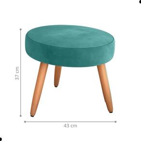 O tecido do puff é em veludo. Suporta até 90kg, espuma D20 assento