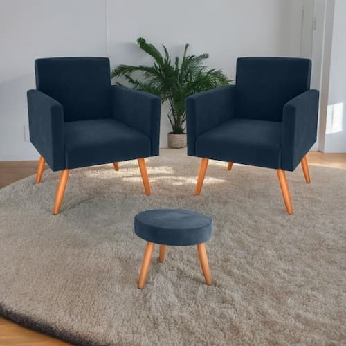 Conjunto de Poltronas e Puff é o ápice do conforto e do estilo. Com um design unico, combina elegância e funcionalidade, tornando-se o complemento perfeito para qualquer ambiente.
