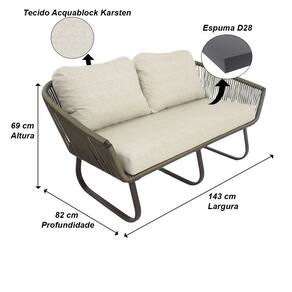 Namoradeira Milão - Altura: 65 cm - Altura do assento ao chão: 45 cm - Largura: 143 cm - Profundidade: 82 cm - Suporta até 200 kg - Acompanha 1 almofada de assento - Acompanha 2 almofada do encosto - Alumínio com pintura eletrostática inclusa