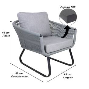 ESPECIFICAÇÕES TÉCNICAS: Poltrona Milão - Altura: 65 cm - Altura do assento ao chão: 45 cm - Largura: 83 cm - Profundidade: 82 cm - Suporta até 200 kg - Acompanha 1 almofada de assento - Acompanha 1 almofada do encosto - Alumínio com pintura eletrostática inclusa