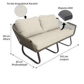 Namoradeira Milão - Altura: 65 cm - Altura do assento ao chão: 45 cm - Largura: 143 cm - Profundidade: 82 cm - Suporta até 200 kg - Acompanha 1 almofada de assento - Acompanha 2 almofada do encosto - Alumínio com pintura eletrostática inclusa