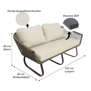 Dimensões Namoradeira Milão: Altura total: 69 cm Altura do assento ao chão: 44 cm Largura total: 143 cm Largura do assento: 117 cm Profundidade: 82 cm Suporta até 300 kg