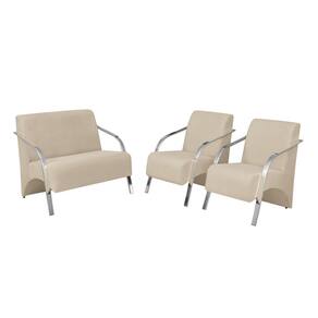 Conjunto Poltronas Venus Braços em Alumínio 1 Namoradeira, 2 de um Lugar Suede - Bege