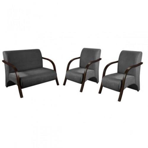 Conjunto Poltronas Venus Braços em Madeira 1 Namoradeira 2 de um Lugar Escritório Suede - cinza