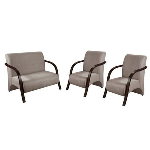 Conjunto Poltronas Venus Braços em Madeira 1 Namoradeira 2 de um Lugar Escritório Suede - Bege Médio