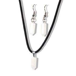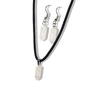 Conheça o Conjunto Colar e Brinco Pedra Quartzo Leitoso. Uma combinação única de beleza e elegância, perfeita para realçar o seu visual.