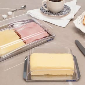 Conjunto Porta Frios e Mantegueira Domama Essence 2 Peças em Aço Inox com Tampas de Acrílico.