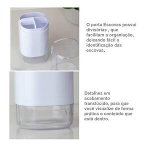 Especificações porta escovas Medidas: a 20.1cm l 7.5 c 7.5cm Peso: 170g Possui divisórias
