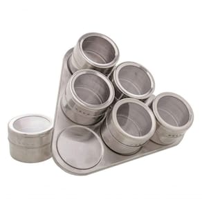 Conjunto de 6 Porta Temperos Aço Inox com Suporte Magnético