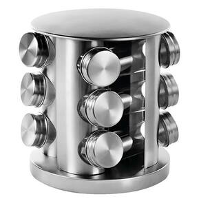 Conjunto Porta Temperos com Suporte Inox e 12 Potes de Vidro Organize sua cozinha com elegância e funcionalidade com o Porta Tempero Giratório em Inox. Com uma base giratória prática, você pode acessar todos os seus temperos com um simples giro, tornando o preparo de suas receitas muito mais fácil e rápido.