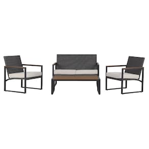 CARACTERÍSTICAS: Medidas da mesa - (AxLxP) 56x110x35 cm. Medidas da poltrona - (AxLxP) 81x70x63 cm. Medidas do sofá - (AxLxP) 81x117x70 cm.