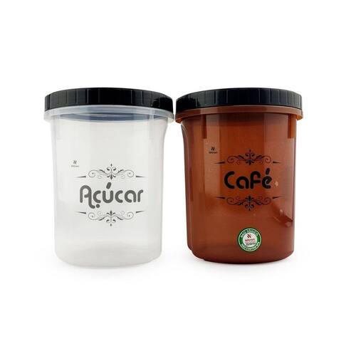 Conjunto Potes Para Café e Açúcar Conservador de Alimento Redondo Acoplado Nitron com Tampa Rosca 2L Caracteristicas