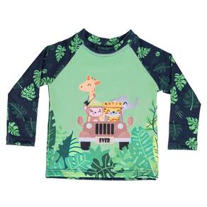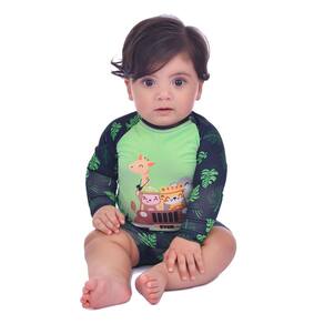 Leve diversão e segurança para os dias ensolarados com o conjunto de praia bebê safari Everly. Com uma alegre e divertida estampa de bichinhos em safari frontal, mangas, costas e sunga boxer com estampa folhagens. A sunga possui cordão de regulagem. Proteção UV 50+ que proporciona leveza, flexibilidade, conforto, resistência a produtos químicos e conservação da temperatura corporal. Esse conjunto garante que seu bebê estará protegido dos raios solares enquanto aproveita o verão com estilo.