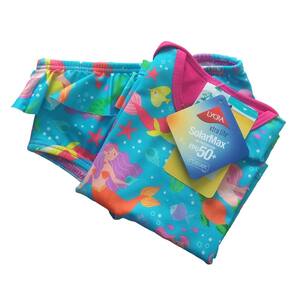 Leve diversão e segurança para os dias ensolarados com este encantador conjunto de praia bebê sereias divertidas. Com uma alegre estampa de sereias e elementos de fundo do mar, a blusa possui costas pink. A calcinha azul com babadinhos completa o visual, adicionando um toque adorável e delicado. Possui proteção UV 50+, que proporcionam leveza, flexibilidade, conforto, resistência a produtos químicos e conservação da temperatura corporal. Esse conjunto garante que sua bebê estará protegida dos raios solares enquanto aproveita o verão com estilo.