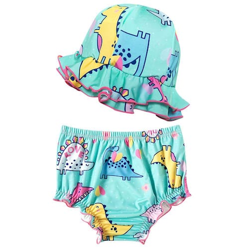 Essa graça de conjunto é perfeito para a pimpolhinha aproveitar uma praia ou piscina com toda a proteção e beleza. Super gracioso com a estampa de lindas dinossauras, este conjunto de bundinha com chapéu da Tip Top é perfeito. Tem proteção solar FPS 50+ permanente, ou seja, não perde a proteção com as lavagens.