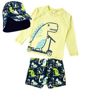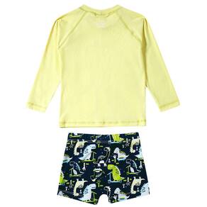 O Kit Praia Bebê e Infantil Dino Sport com Boné da Tip Top possui proteção solar FPS 50+ permanente, é super leve, confortável e seguro, além de lindo e estiloso. É o conjunto que o seu pimpolhinho precisa para curtir a praia ou a piscina com toda a proteção, sem perder a liberdade dos movimentos. A Camiseta é verde limão clarinho.