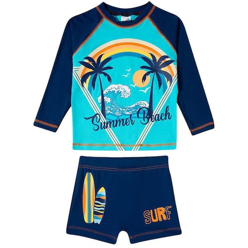 O Conjunto Praia Infantil da Coleção Coqueiro Tropical da Tip Top possui proteção solar FPS 50+ permanente, é super leve, confortável e seguro, além de lindo e estiloso. É o conjunto que o seu pimpolhinho precisa para curtir a praia ou a piscina com toda a proteção, sem perder a liberdade dos movimentos.
