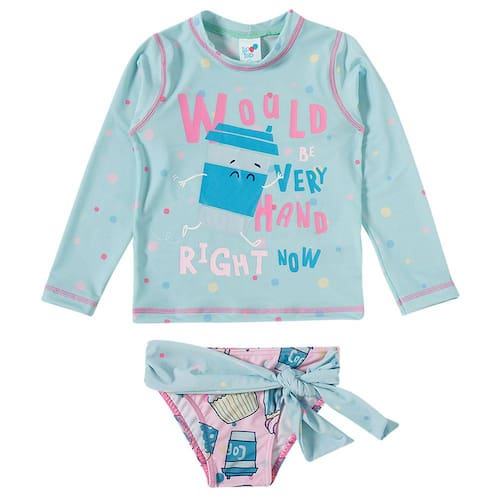 O Conjunto Praia Menina Proteção UV Cup Cakes da Tip Top é ideal para as pimpolhas poderem aproveitar a praia com todo estilo e proteção. Possui proteção solar permanente (FPS 50+) tem design moderno e confecção em tecidos leves.