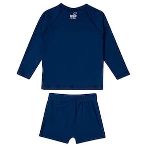 O Conjunto Praia Infantil Dino Marinho da Tip Top possui proteção solar FPS 50+ permanente, é super leve, confortável e seguro, além de lindo e estiloso. É o conjunto que o seu pimpolhinho precisa para curtir a praia ou a piscina com toda a proteção, sem perder a liberdade dos movimentos.