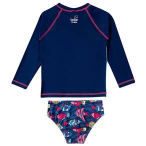O Conjunto Praia Menina Proteção UV Peixes Marinho da Tip Top é ideal para as pimpolhas poderem aproveitar a praia com todo estilo e proteção. Possui proteção solar permanente (FPS 50+) tem design moderno e confecção em tecidos leves.