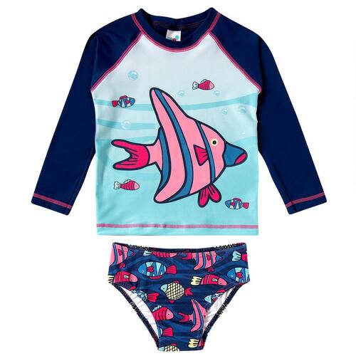 O Conjunto Praia Menina Proteção UV Peixes Marinho da Tip Top é ideal para as pimpolhas poderem aproveitar a praia com todo estilo e proteção. Possui proteção solar permanente (FPS 50+) tem design moderno e confecção em tecidos leves.