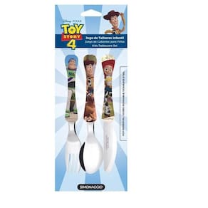 Conjunto pratos e Faqueiro com 3 peças - Toy Story - Kids Faqueiro com 3 peças com o tema Toy Story e pratos raso e fundo Linha Tematica Composto por: 1 colher de mesa 1 garfo de mesa 1 faca com leve serrilha 1 Prato raso- 16,5 cm 1 Prato fundo - 15,5 cm