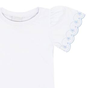 Conjunto básico e fashionista! Ideal para usar as peças juntas ou criar novas alternativas com elas separadamente, o conjunto é composto pela blusa em meia malha na cor branca com bordado diferenciado nas mangas e decote arredondado e o short saia na cor hortênsia que possuí pregas leves e elástico na cintura para maior conforto, segurança e movimentação da pequena.