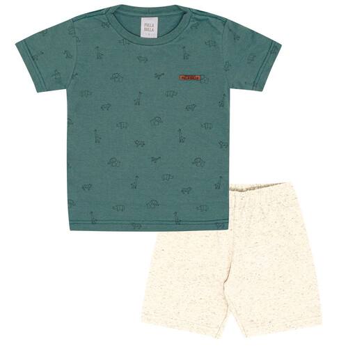 O dia na casa do priminho vai ser repleto de muitas brincadeiras e diversão nos dias de verão! Aproveite e garanta este conjunto para seu pequeno, composto por uma camiseta meia malha floresta com estampa de safaris em linhas e etiqueta termocolante e a bermuda em moletom linho na cor natural com elastano no cós para maior conforto e segurança.
