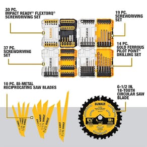 - Apresenta alguns dos bits mais populares do DEWALT que abrangem uma variedade de usos