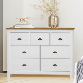 Conjunto Quarto: 1 Cabeceira, Cômoda 7 Gavetas e 2 Mesas de Cabeceiras Topázio Branco/Freijó Madeira Pinus - Finestra