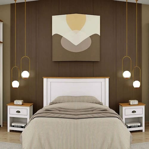 Conjunto Quarto: 1 Cabeceira e 2 Mesas de Cabeceiras c/ 1 gaveta Topázio Branco/Freijó Madeira Pinus - Finestra